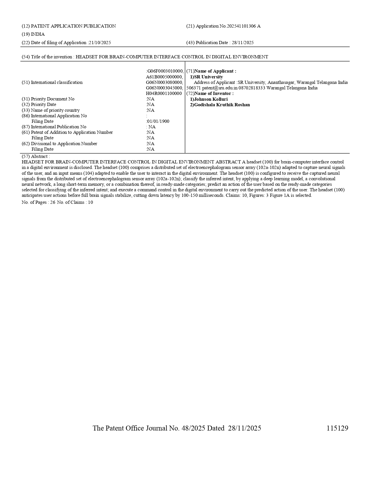 A BCI headset that captures brain signals using EEG sensors and uses deep learning to detect user intent. It predicts actions and executes commands in a digital environment with reduced latency (100–150 ms), enabling faster and intuitive interaction