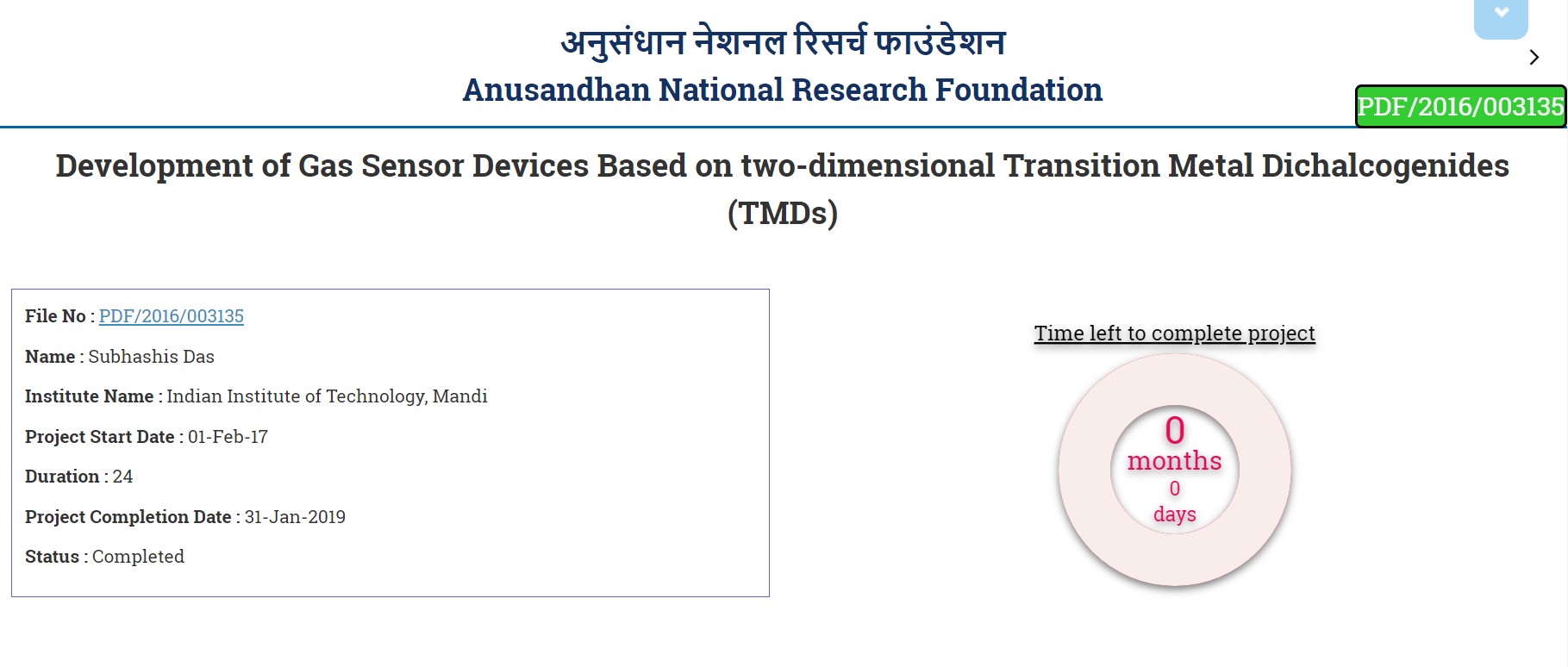 The objective of this project was to demonstrate the gas sensing performance of two-dimensional TMDs at low temperature as well as room temperature and to evaluate the reaction rates, activation energies of adsorption and desorption of gas molecules on 2D materials, and to demonstrate the thermodynamics and kinetics involved in the process of adsorption and desorption of gases on the TMDs. The expected output and outcome of the proposal was to bandgap controlled stable gas sensing material based on 2d TMDs.