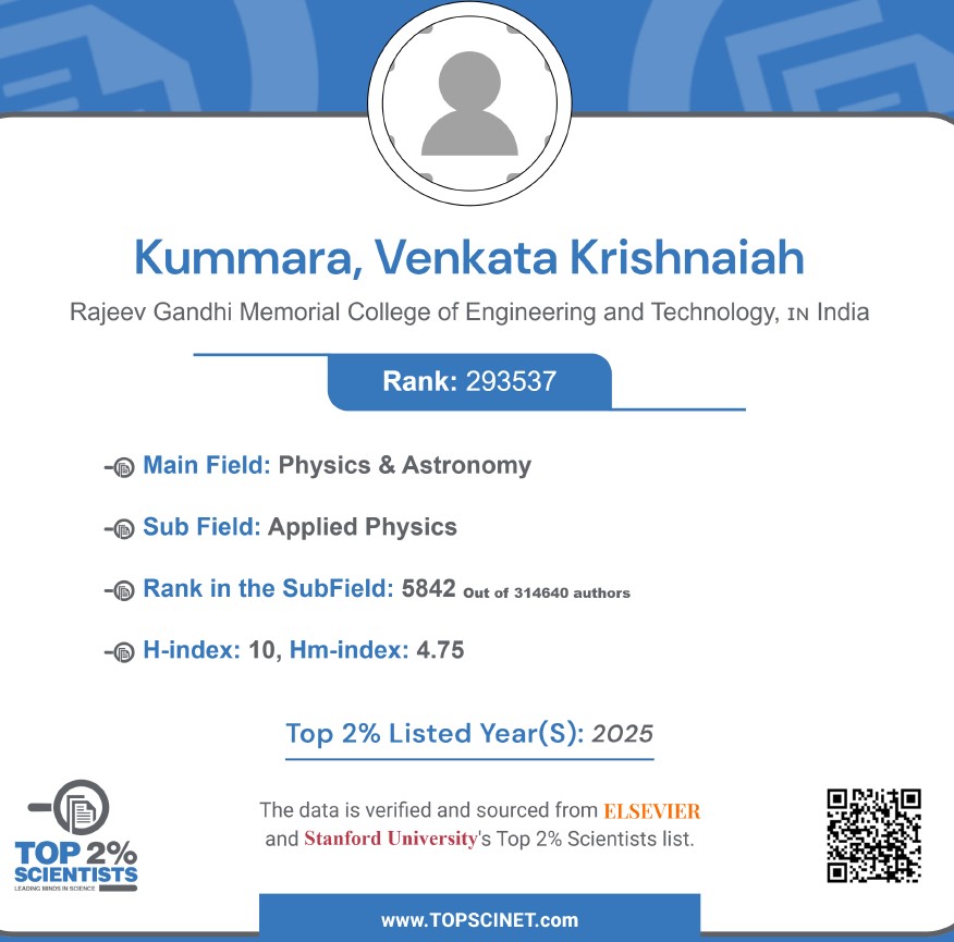 Assistant Professor at Rajeev Gandhi Memorial College of Engineering and Technology, Andhra Pradesh, India, from 2025-07-01 to 2025-11-30.