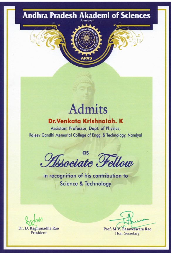 Assistant Professor at Rajeev Gandhi Memorial College of Engineering and Technology, Andhra Pradesh, India, from 2016-11-04 to 2021-03-30.