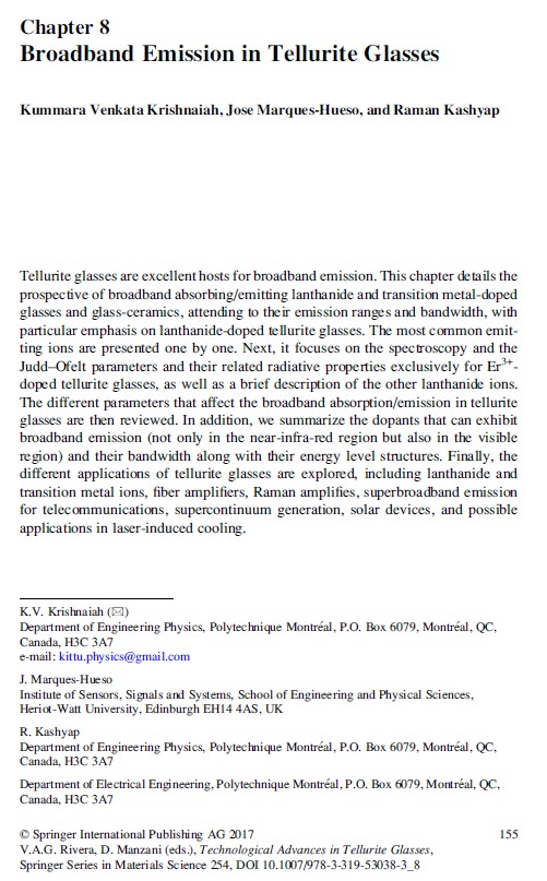 20. L.J.Q. Maia, J. Thomas, Y. Ledemi, K. Venkata Krishnaiah, D. Seletskiy, Y.Messaddeq, R. Kashyap, Photonic Properties of Novel Yb3+ Doped Germanium-Lead Oxyfluoride Glass-Ceramics for Laser Cooling Applications, Frontiers of Optoelectronics 11 (2018) 189-198, IF = 5.4, Cites:4, Q1 rank (https://doi.org/10.1007/s12200-018-0815-z), Percentile = 19.67%