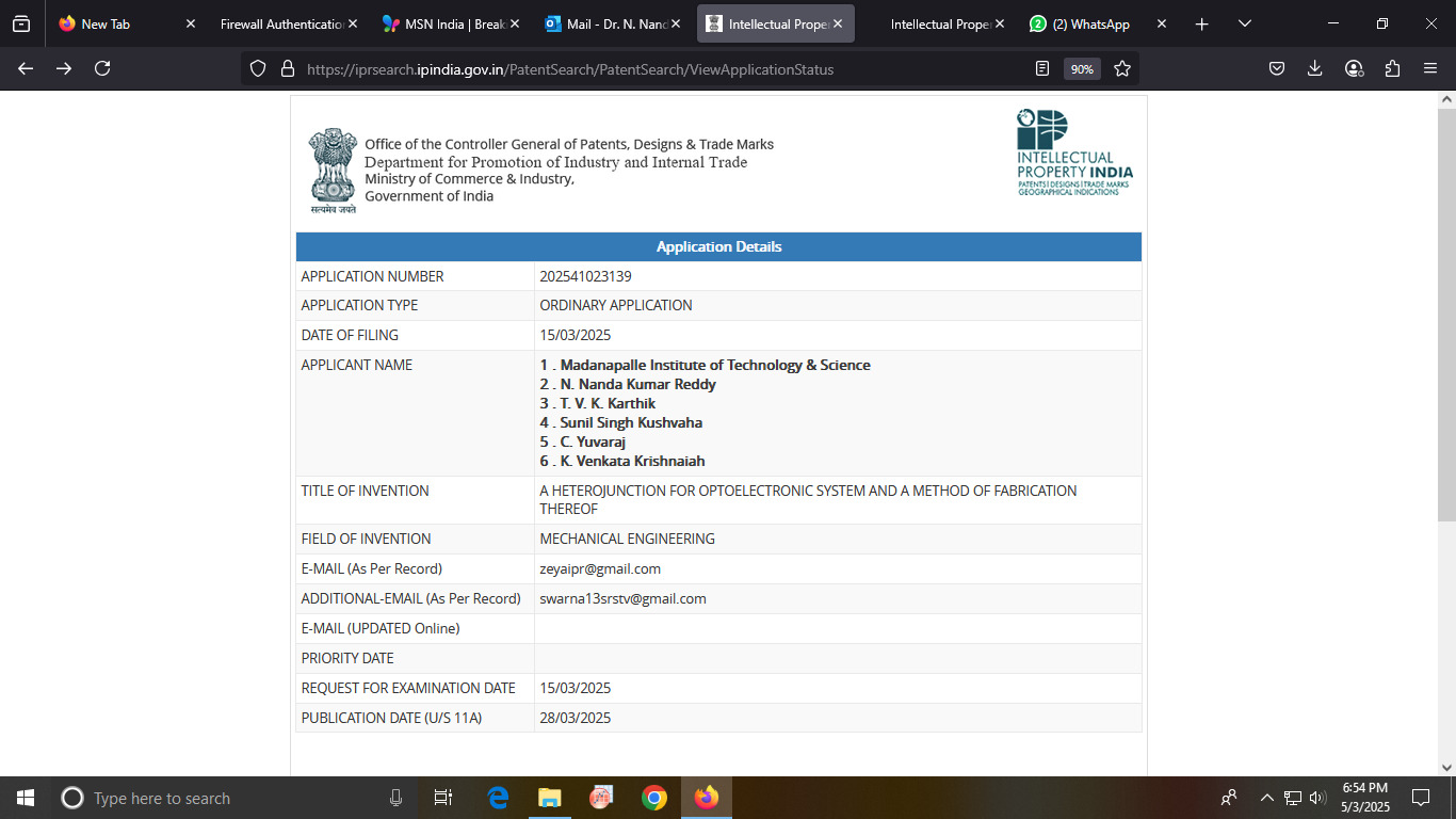 3. Prasanth Musalikunta, Ravi Nirlakalla, Ravanamma Rallapalli, Neelima Gaddam, K. Venkata Krishnaiah*, Aboud Ahmed Awadh Bahajjaj, Nanda Kumar Reddy Nallabala, Upendra Kumar Kagola, Optimizing energy transfer in Er3+/Yb3+ Co-doped heavy metal oxide bismuth borate glasses for C-band optical amplifiers, Optical Materials 163 (2025) 116939) IF=4.2, Q1 rank, Percentile = 23.20% (https://doi.org/10.1016/j.optmat.2025.116939) (*Corresponding author)