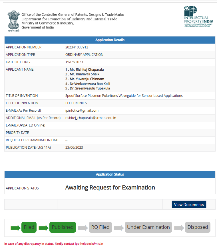Imamvali, S., Prakash, K., Bansal, S., Tupakula, S., Suresh, A. K., Al-Gburi, A. J. A., ... & Al-mugren, K. S. (2025). Label-Free Biosensing of Persistent Organic Pollutants in Sewage Water using Spoof Surface Plasmon Polaritons. Sensors and Actuators A: Physical, 116504. DOI: 10.1016/j.sna.2025.116504
