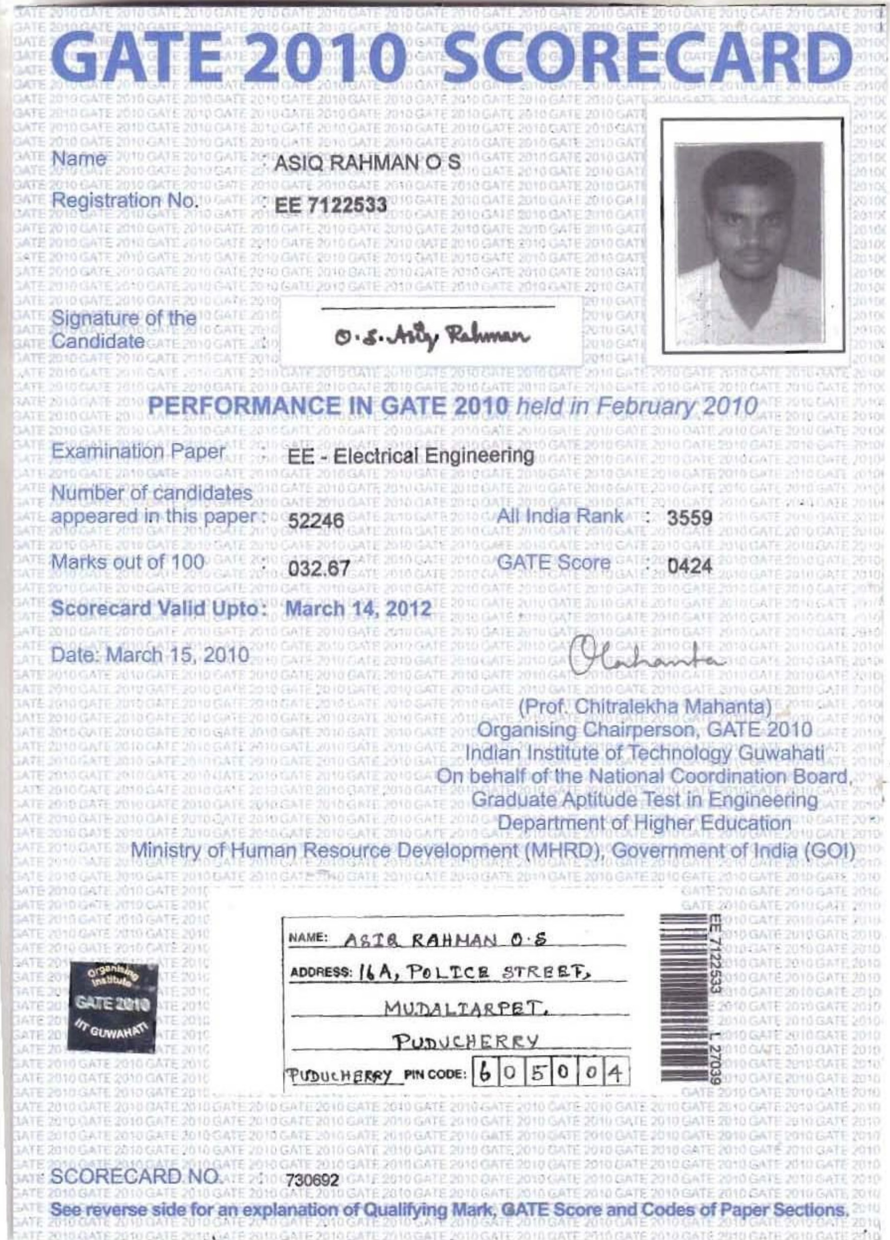 B. Tech. in Electrical and Electronics Engineering, Pondicherry University, Puducherry
