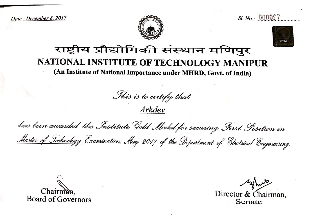 Ph.D in Electrical Engineering from National Institute of Technology Manipur