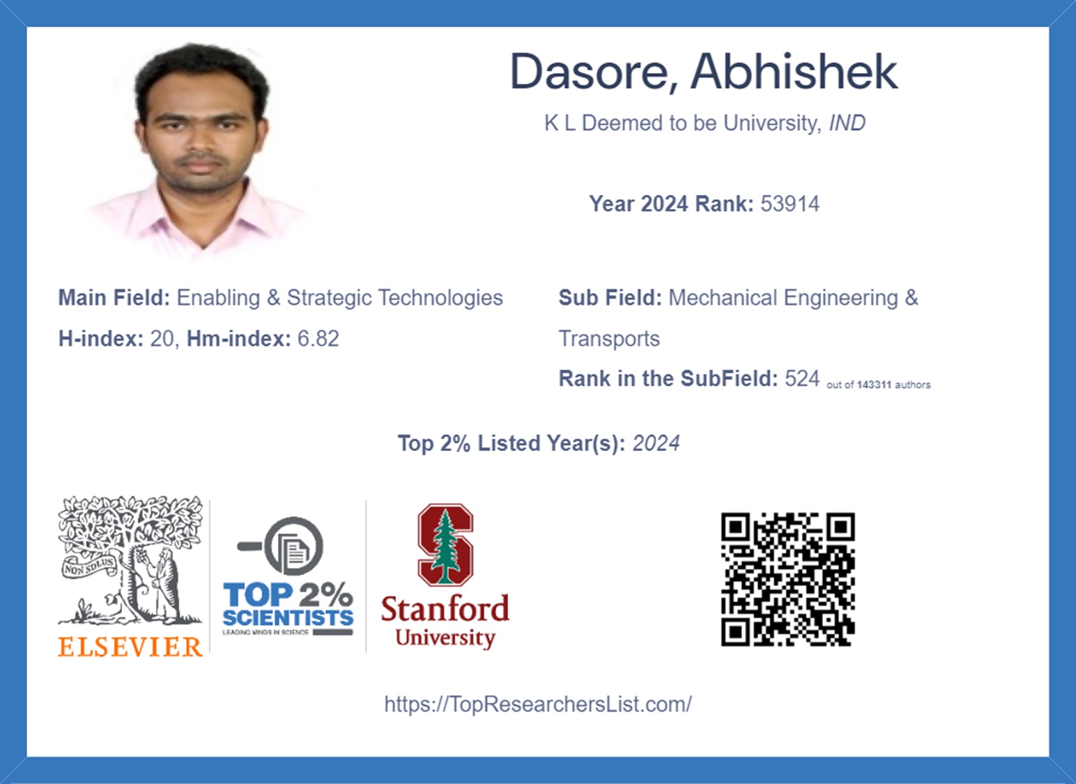 Ph.D. in Mechanical Engineering from KL Deemed to be University, Guntur