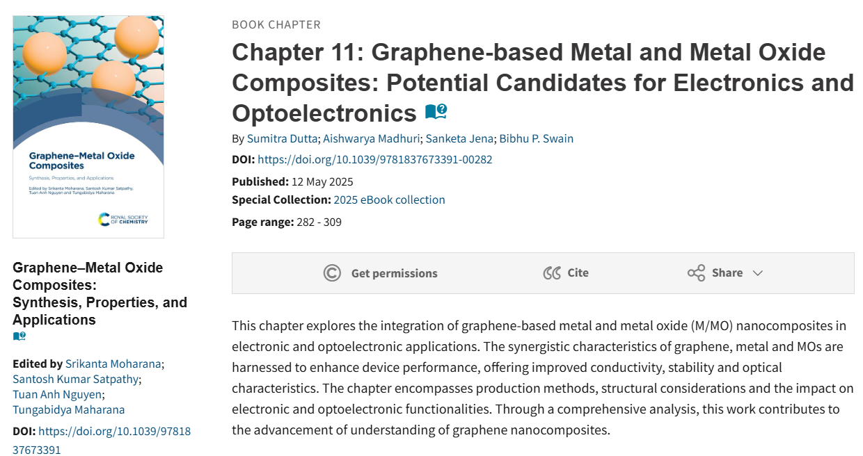 Sumitra Dutta; Aishwarya Mahuri; Sanketa Jena; Soumyadeep Laha; Bibhu Prasad Swain, Electronic environments, optical and electrochemical properties of FeAlOx/reduced graphene oxide nanocomposites, Physica B: Condensed Matter 705 (2025) 417078, https://doi.org/10.1016/j.physb.2025.417078, Q2 (I.F.-2.8)